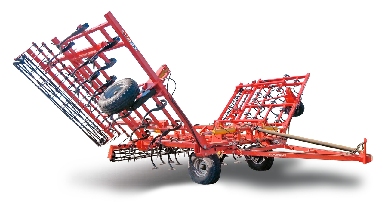 Орудие обеспечивает сплошную обработку по всей ширине захвата. Надежная секционная конструкция орудия. Четырехрядное расположение рабочих органов снижает забиваемость орудия. Рабочий орган - пружинные усиленные S-образные стойки 65х12 мм и стрельчатые лапы шириной 220 мм производства компании Bellota. Орудие оснащено двумя регулируемыми рядами штригельных пружинных боронок для сглаживания гребней и равномерного распределения пожнивных остатков по всей ширине захвата. Быстрая регулировка глубины обработки обеспечивается прикатывающими катками и винтовым механизмом колес. Стандартно применяется трубчатый каток, который выравнивает и крошит почву. Производится из бесшовных толстостенных трубок для прочности и долговечности. Также возможна установка планчатых катков, благодаря углу установки планок обеспечивается дополнительное крошение и распределение земли.